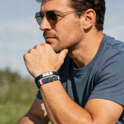 Pulsera "Heathrow" Ancla Nylon Tricolor Azul | Olliver Abbott