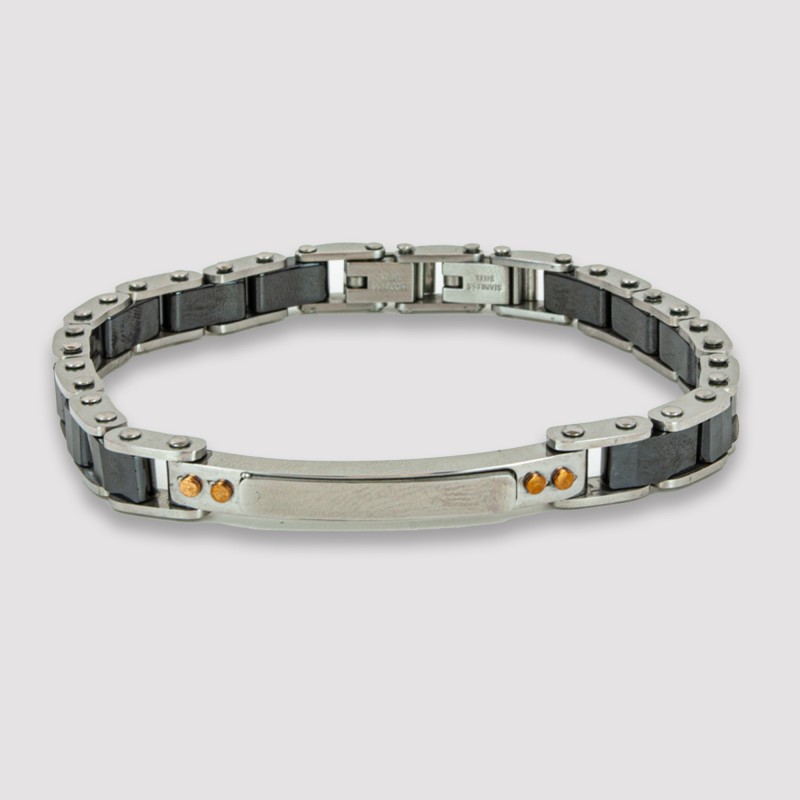 Pulsera de acero inoxidable y cerámica negra. Eslabones regulables para diferentes medidas.